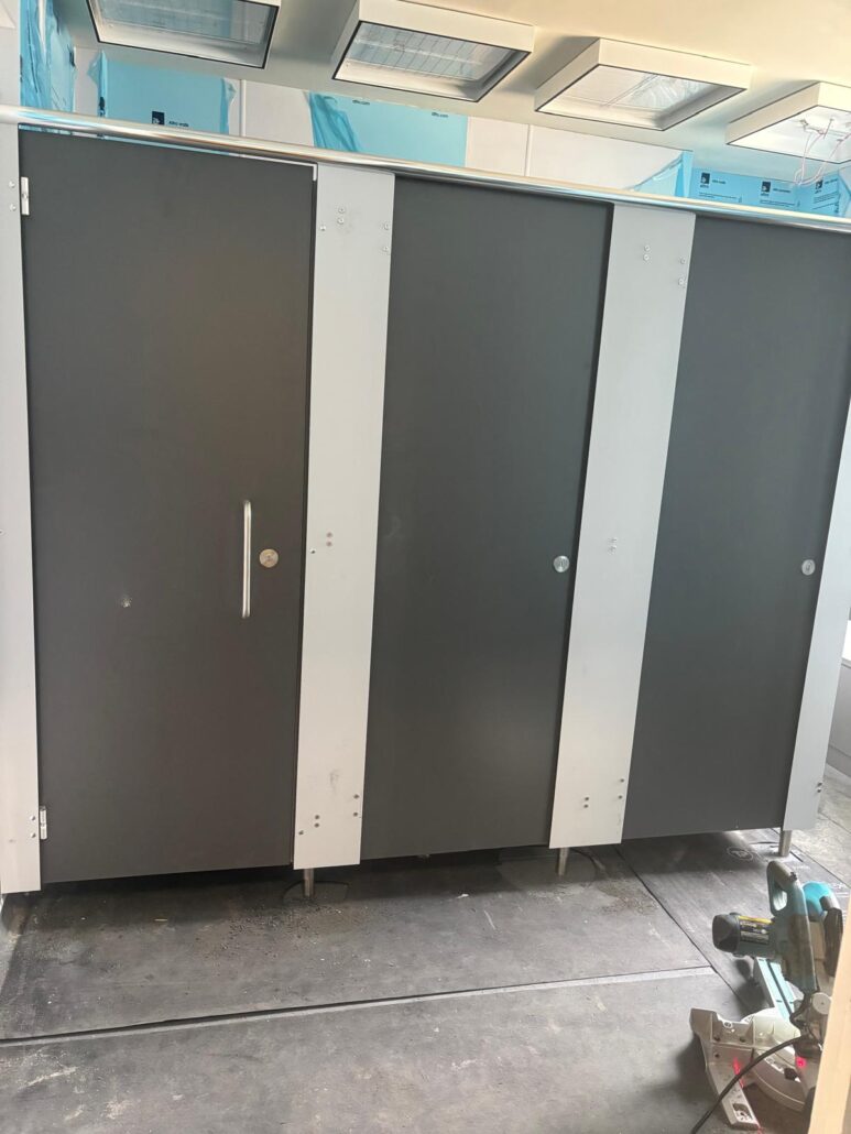 The new duct panels, cubicles and vanity unit was installed, the sanitary ware installed, tested and commissioned, grabrails were provided to the Ambulant cubicle in compliance with Part M, with decoration to all Woodwork and to complete new Fixtures and Fittings were installed.