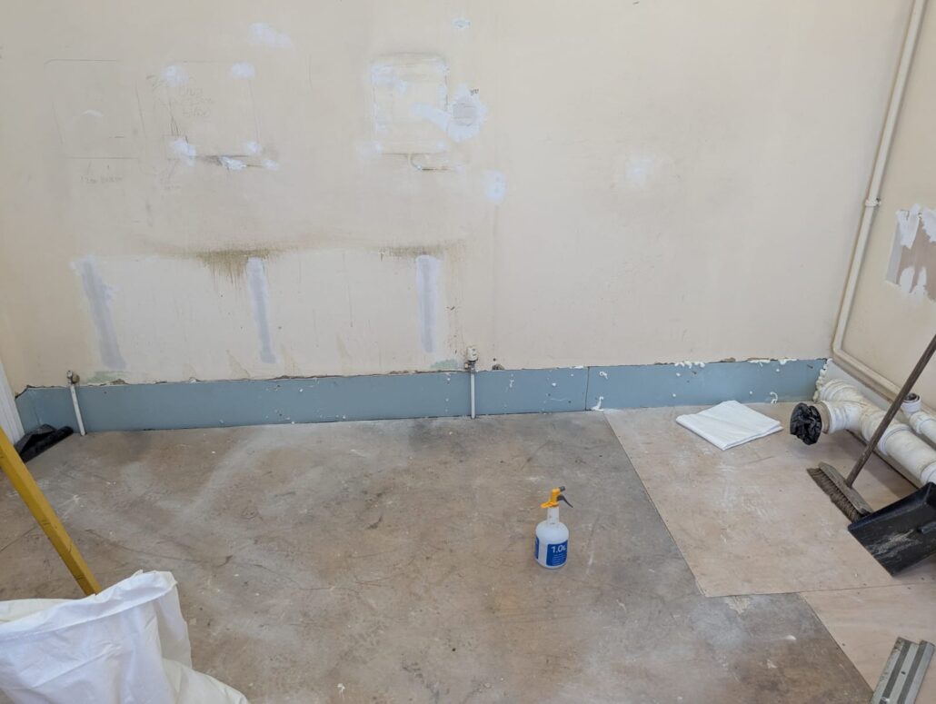 The power and water supplies to the facility were isolated to allow the area to be stripped out, this included the sanitary ware, cubicles, floor finishes, lighting, hand dryers and fixtures and fittings.